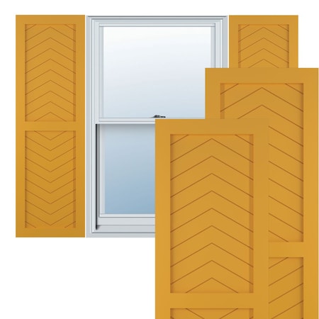 Ekena Millwork TFP101CV18X033TU True Fit PVC Two Panel Chevron Modern Style Fixed Mount Shutters, (Per Pair-Hardware Not Included), 18"W x 33"H, Turmeric