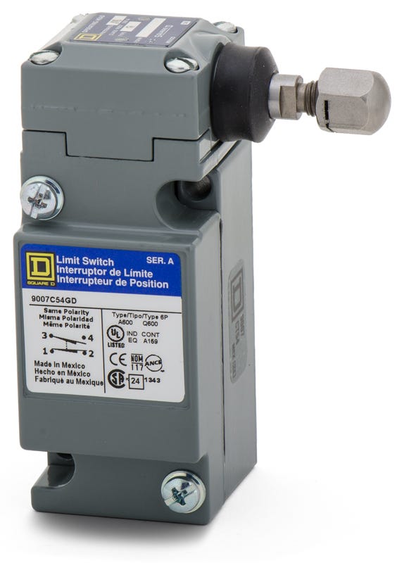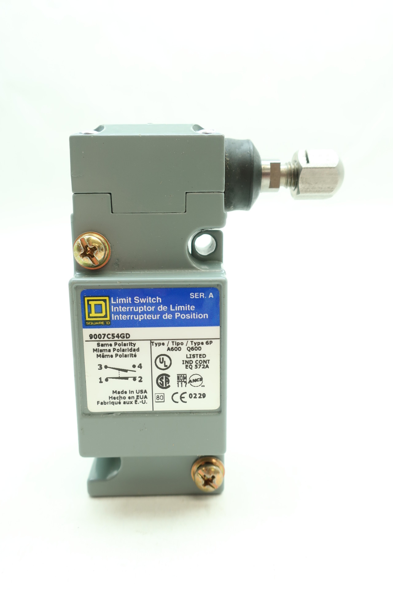 Square D 9007C54GD Heavy Duty NEMA Limit Switch, Full Size, 1 Pole, Plunger Adj. Head