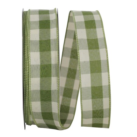 Celine Plaid Twill Wired Edge Ribbon - Moss - 1.5 in. x 50 yards