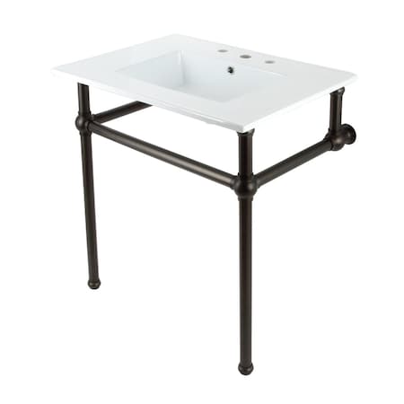 Kingston Brass KVBH31227W8B5 Addington 31" Console Sink with Brass Legs (8-Inch, 3 Hole), White/Oil Rubbed Bronze - Kingston Brass KVBH31227W8B5