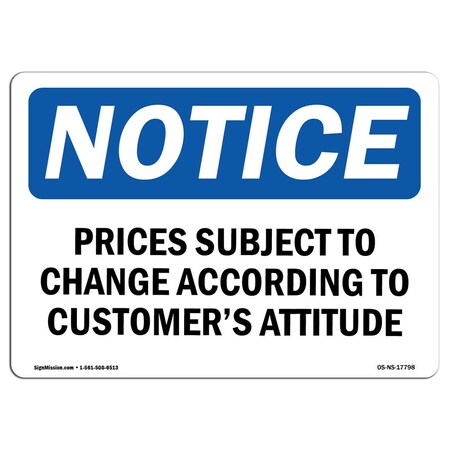OSHA Notice Sign, Prices Subject To Change According To Customer'S, 14in X 10in Aluminum