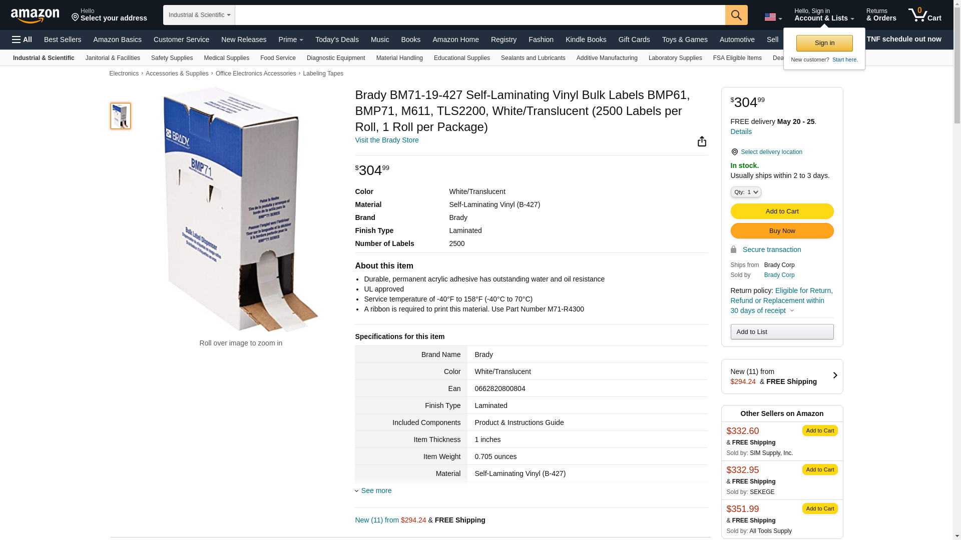 Brady Bm71-19-427 / Roll Of 2500 Labels Rohs Compliant: Yes - BM71-19-427