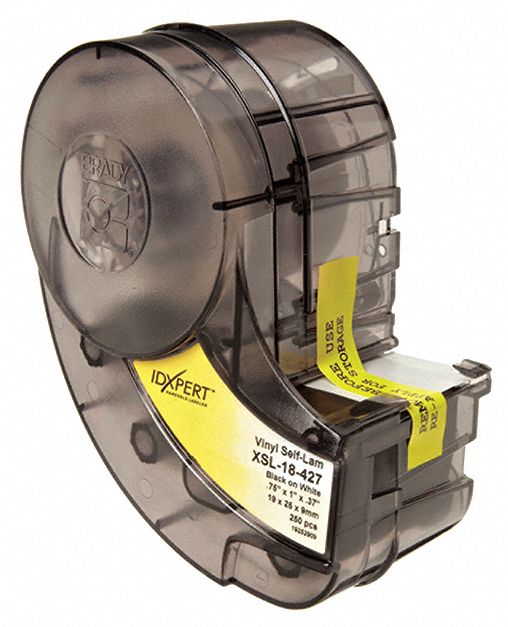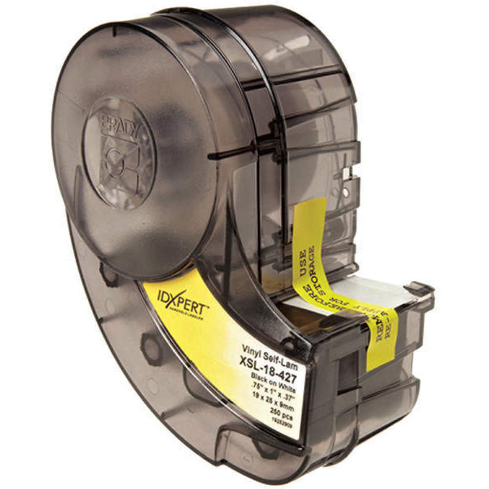 Brady XSL-18-427 Idxpert 1" Height, 0.75" Width, B-427 Self-Laminating Vinyl, Black On White And Translucent Color Label (250 Per Cartridge)