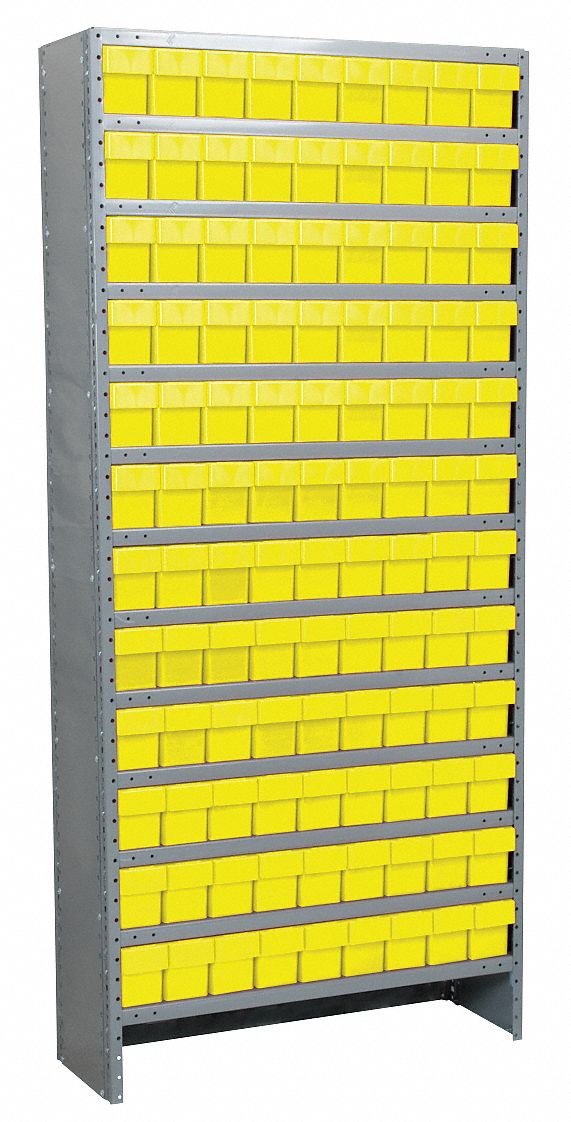 Akro-Mils ASC1279142YEL Enclosed Steel Shelving Kit with 108 AkroDrawers, 12" x 36" x 79", Gray/Yellow