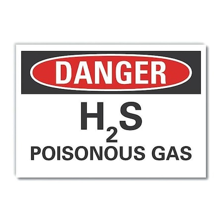 H(2)S Poisonous Gas Danger Label, Horizontal Rectangle, Number of Printed Sides 1, English, Sign Format Traditional OSHA, Sign Legend H2S Poisonous Gas, Sign Legend Background Color White, Sign Legend Style Text