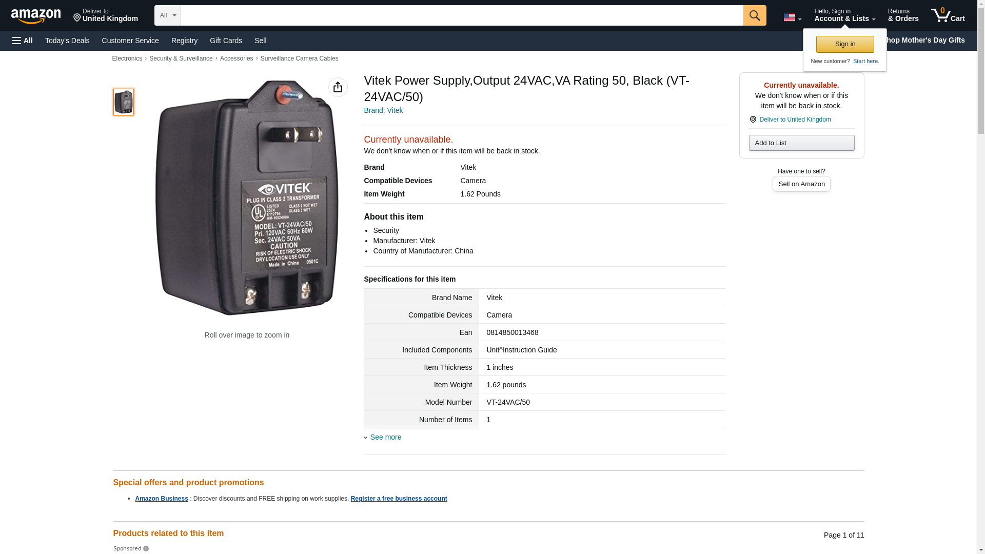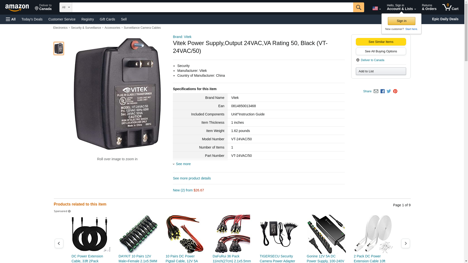 Vitek Power Supply,Output 24VAC,VA Rating 50, Black (VT-24VAC/50)