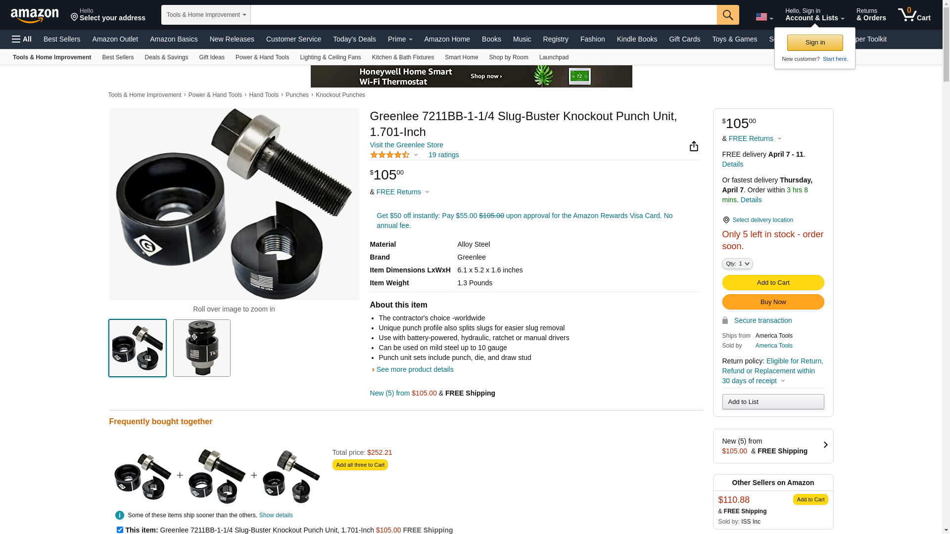 | ToolUp.com | GREENLEE 7211BB-1-1/4 | 1 | 1 | 1 @ $81.46 | |