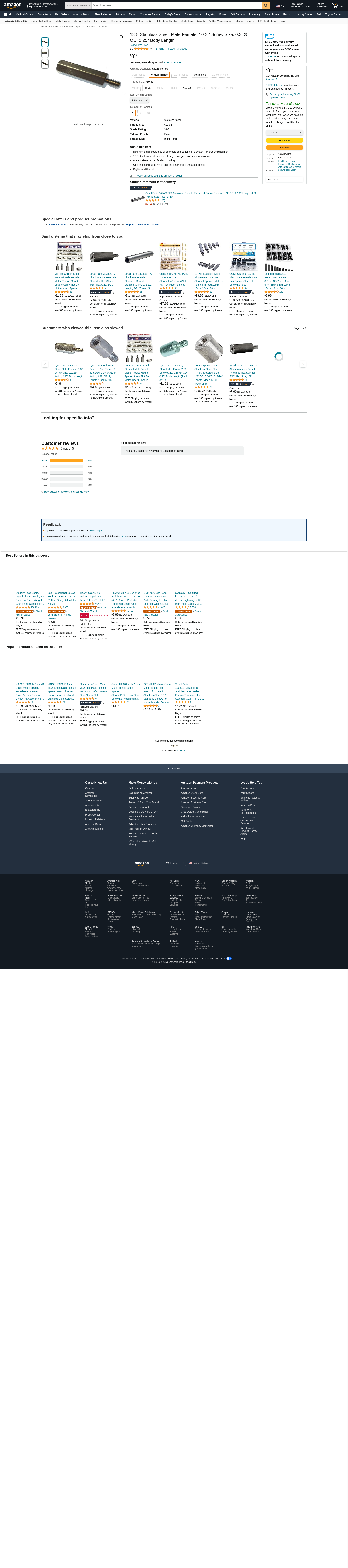Lyn-Tron, 18-8 Stainless Steel, Male-Female, 10-32 Screw Size, 0.3125" OD, 2.25" Body Length