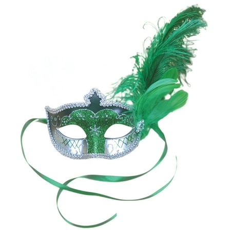 <ul> <li>Adjustable, Tie-On Fit</li> <li>Large green feather and sparkling glitter to draw attention</li> <li>Great for St Patrick's Day party or Mardi Gras celebration</li> <li>Large Feather Design</li> </ul>