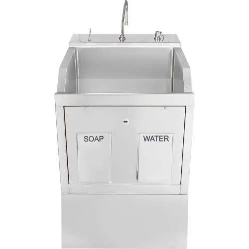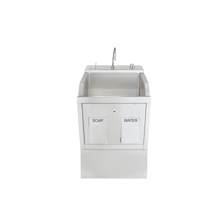 - Product Type: (1) bay, infra-red activated water and knee activated water and soap dispenser; 32"W x 27-1/4"D x 53"H