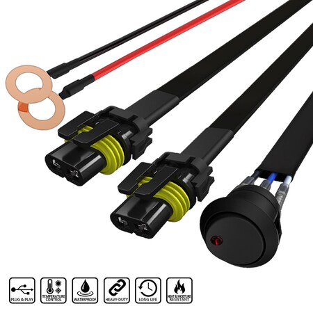 Spec-D Universal 9' 14 Gauge Fog Lights Wiring Harness Kit w/ 2 Connectors | LF-WIRE14-2-RS