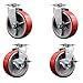 Swivel Top Plate Caster Set – Red 6 Inch by 2 Inch Poly on Cast Iron Wheel – Roller Bearing – 1,800 lbs. Total Capacity –Includes 2 Locking Swivel Casters and 2 Swivel Casters – Service Caster Brand