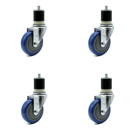 4 Inch Blue Polyurethane Wheel Swivel 1-7/8 Inch Expanding Stem Caster Set SCC