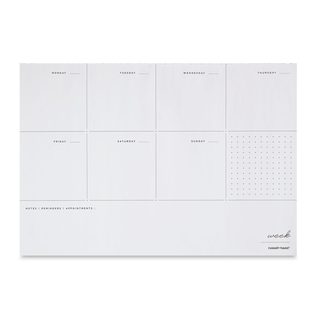 As an Amazon Associate, we earn from qualifying purchases. RUSSELL AND HAZEL . 75112-1109 RUSSELL AND HAZEL . 75112-1109 Gallery Attributes Brand name, Manufacturer name, ManufacturerRUSSELL AND HAZEL Attribute00Weekly Desktop Calendar Pad Attribute017"H x 10"W AttributeKey00Description AttributeKey01Size KnownManRussell and Hazel Desktop Calendar Pad - Weekly | BLICK Art Materials jsonUrlData1np0WRysDRogRGyvmTW12m moq, multiple, tierMinQty11 MPN, SKU75112-1109 qtyInStock-2 qtySourceFieldMap tierPrice116 Distributor offers SellerSKUMOQIn stockMultiplePrices Blick75112-11091-211 @ $16.00