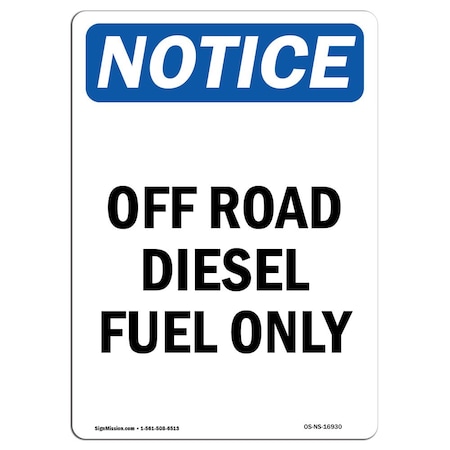 OSHA Notice Sign, Off Road Diesel Fuel Only, 24in X 18in Decal