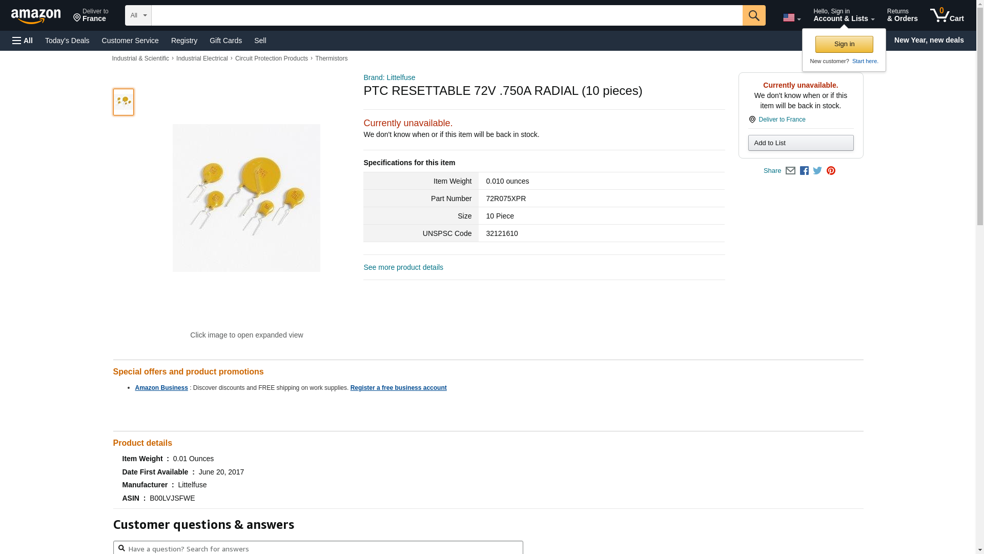 Littelfuse Fuse, Ptc Reset, 72V, 750Ma, Radial - 72R075XPR
