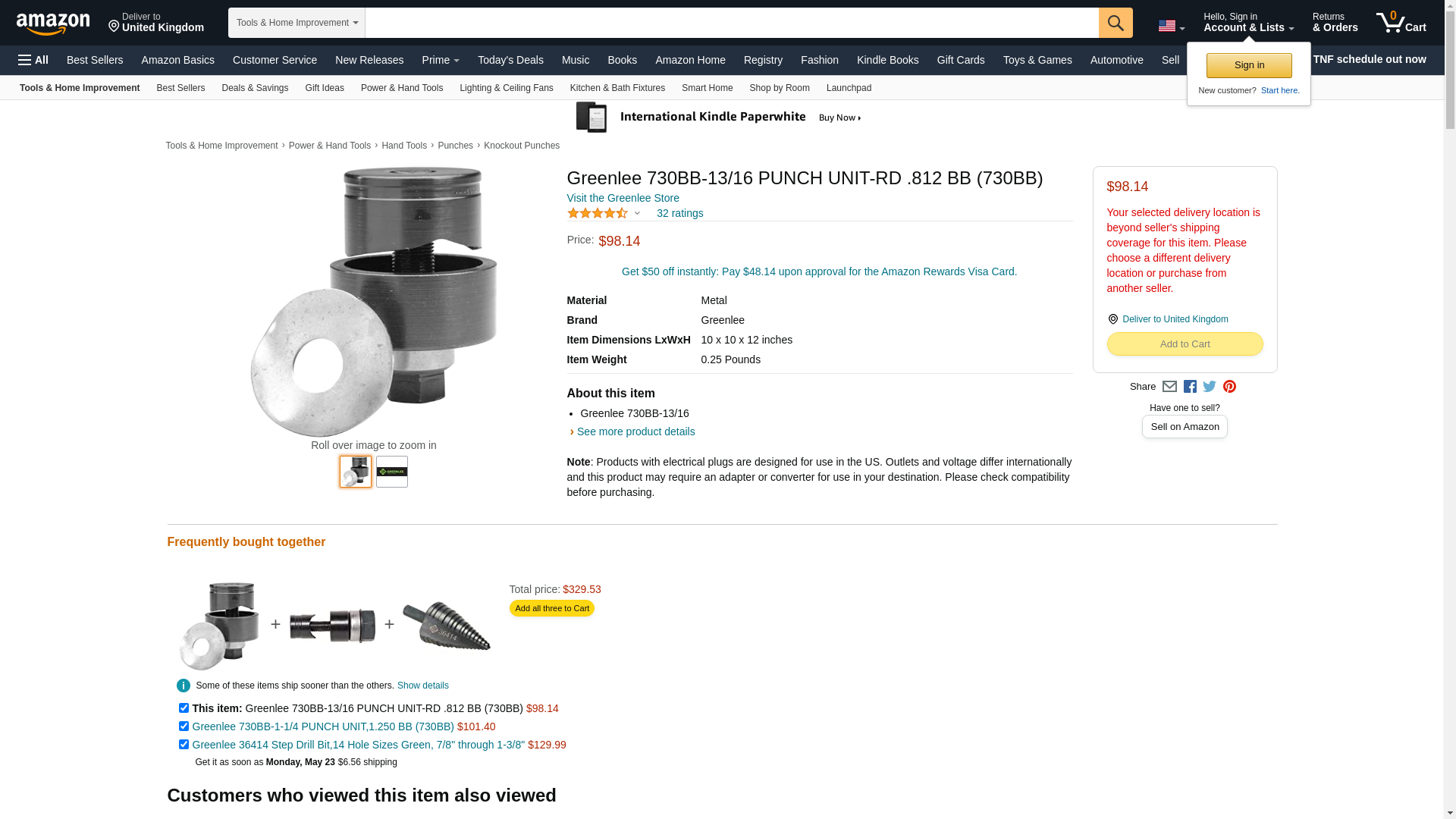 | ToolUp.com | GREENLEE 730BB-13/16 | 1 | -2 | 1 | 1 @ $71.93 |