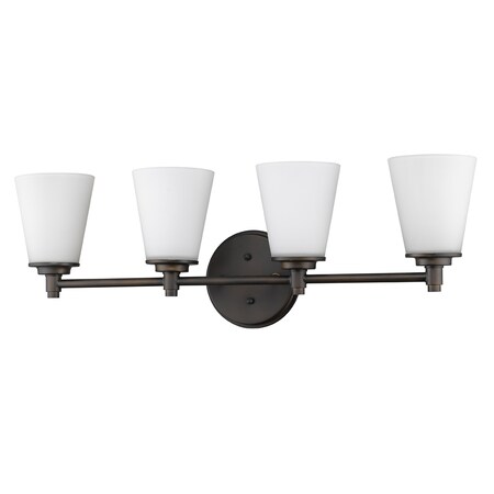 - Transitional Four Light Bath from Conti collection in Oil Rubbed Bronze finish