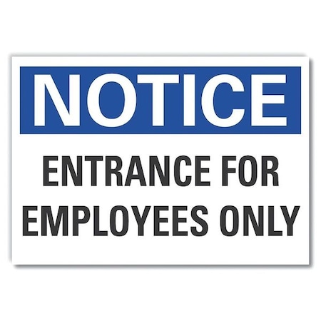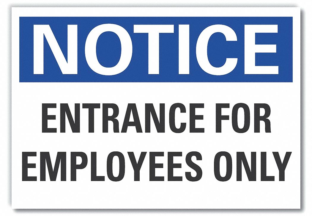 Entrance Sign, Horizontal Rectangle, Number of Printed Sides 1, English, Sign Format Traditional OSHA, Sign Legend Entrance For Employees Only, Sign Legend Background Color White, Sign Legend Style Text