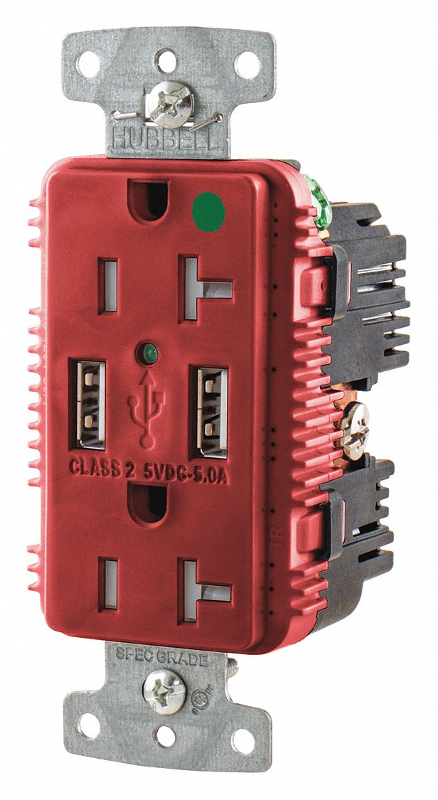 Hubbell Wiring Devices Rcpt Hg Dup 20A 125V 5A 5V Usb Port A R - USB8300A5R