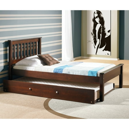 <p>With oodles of options and add-ons, the <strong>Donco Contempo Bed</strong> is easy to customize for your kid's bedroom. Crafted of solid wood, the bed starts with a classic slatted headboard with clean, modern lines for a versatile appeal.</p> <br /> <p>From there, you can add your choice of underbed unit to your order. The roll-out trundle is ideal for slumber parties and sleepover guests, while the underbed storage unit offers two drawers that can store everything from extra bed linens to off-season sweaters. The dark cappuccino finish option features metal knob pulls, while the light espresso has cutout finger pulls. Bed is available in your choice of size.</p> <br /> <p><strong>Dimensions:</strong></p> <ul> <li>Twin: 80W x 43D x 39H in.</li> <li>Full: 78W x 58D x 37H in.</li> </ul> <br /> <p><strong>About Donco Trading Co.</strong><br />Headquartered in Fort Worth, Texas, Donco Trading Company has made youth furniture their specialty. The family-owned and -operated business carries a full line of day beds, platform beds, bunk beds, and more - all reasonably priced. They distribute to and work directly with small business owners, specialty stores, and more in locations throughout the country. In addition to the Fort Worth office, they also have a distribution center in Kenosha, Wisconsin, and showrooms in Tupelo, Mississippi, and High Point, North Carolina.</p>