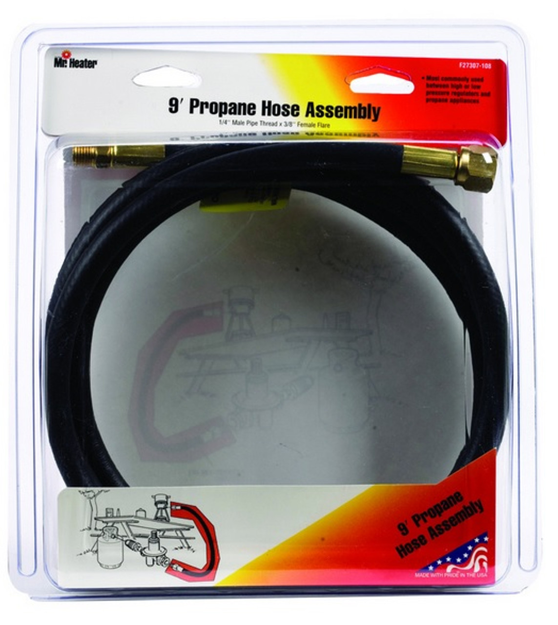 Mr. Heater 3/8 in. Dia. x 1/4 in. Dia. x 9 ft. L Brass/Plastic Male Pipe Thread x Female Flare Hose Assembly