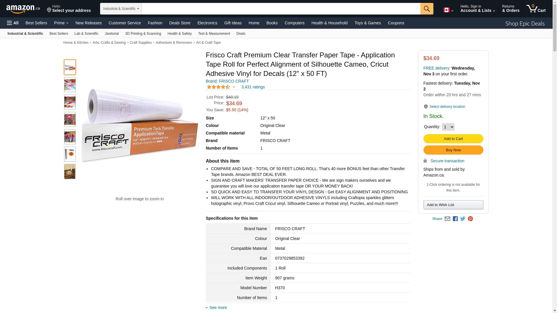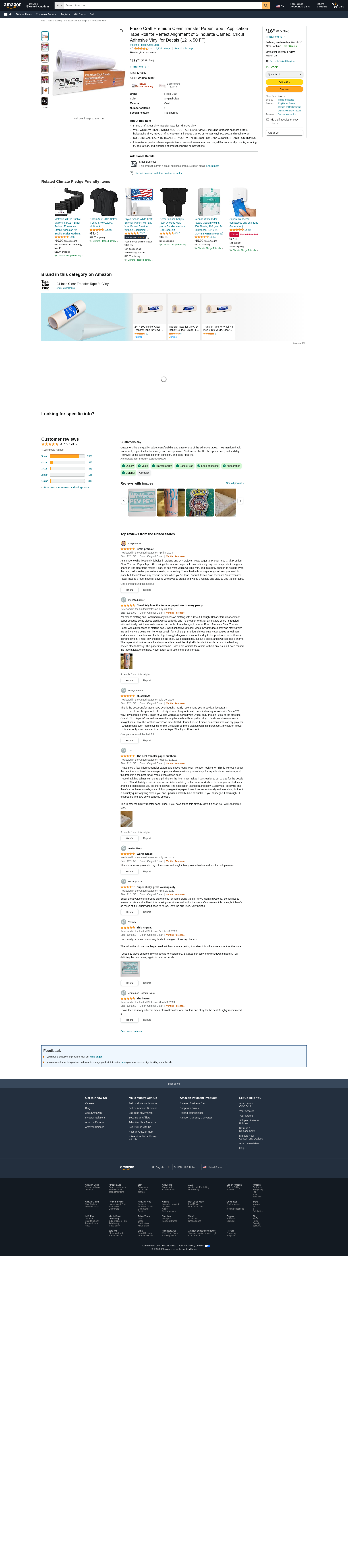 Frisco Craft 12" x 50 FT Premium Clear Transfer Paper Tape - Application Tape Roll for Perfect Alignment of Silhouette Cameo, Cricut Adhesive Vinyl for Decals