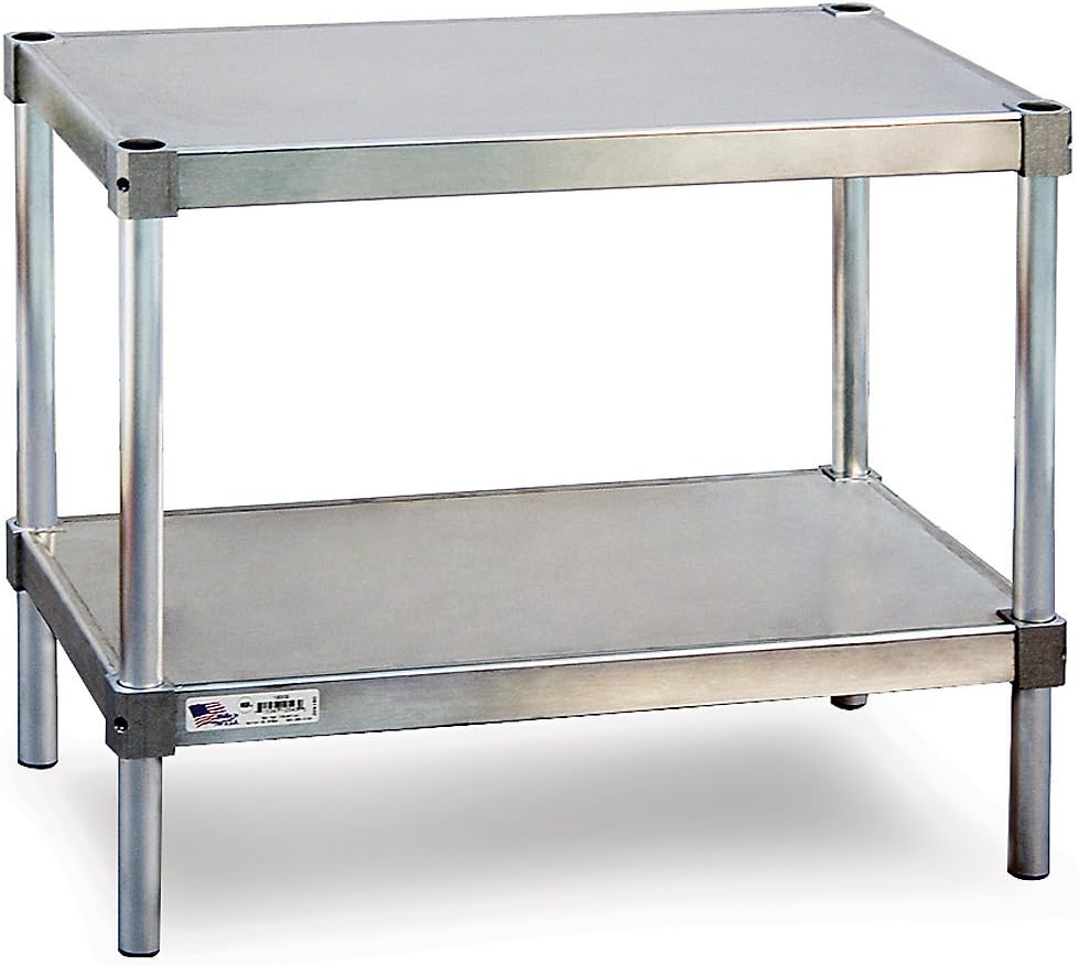 Lifetime warranty against rust and corrosion. Adjustable solid aluminum shelves have a 1/8" beveled edge to contain spills. 400-lb. capacity shelves. 1 5/16" diam posts are marked in 2" increments and have caps at both ends. Add the optional casters to create a mobile stand. NSF certified. Unassembled.