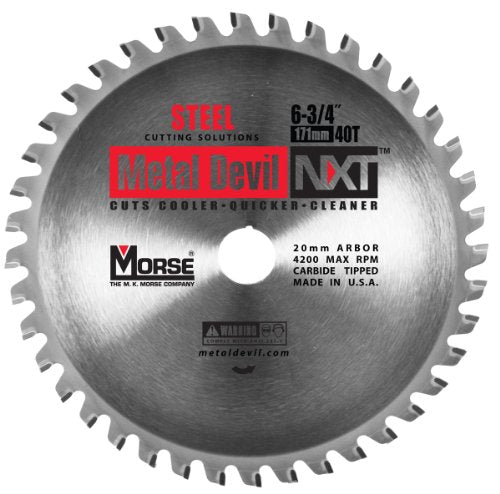 6-3/4" x 40T Carbide Tipped, Metal Devil NXT Circular Saw Blade, 6-3/4" Blade, 40 Teeth, 20 mm. Arbor, Steel Apps, 4200 Max RPM by M.K. Morse - 1/BX