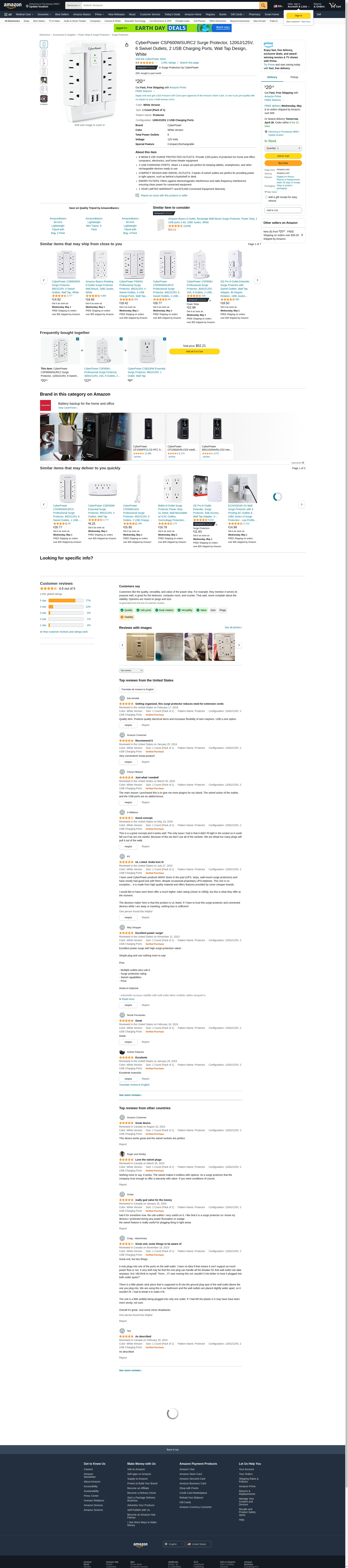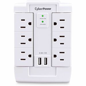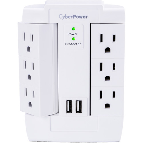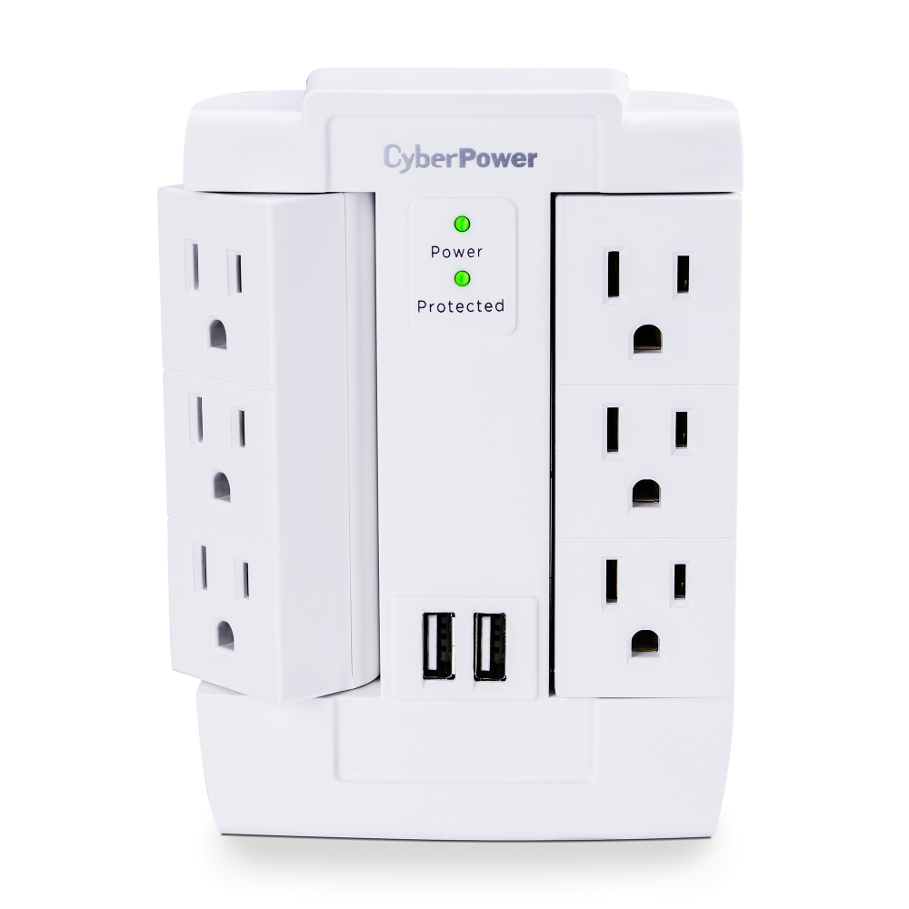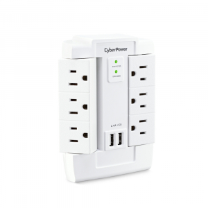 CyberPower CSP600WSURC2 Surge Protector, 1200J/125V, 6 Swivel Outlets, 2 USB Charging Ports, Wall Tap Design, White