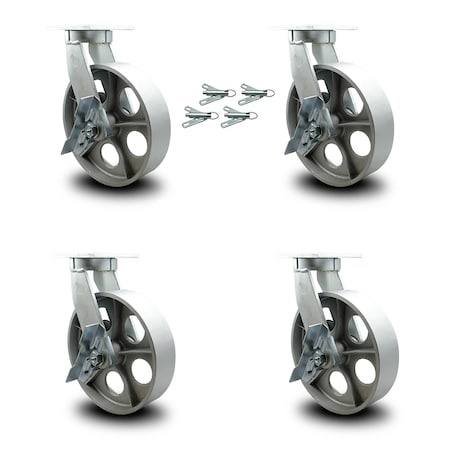 Extra Heavy Duty Kingpinless 10” x 3” Semi Steel Cast Iron Swivel Caster Set with Side Lock Brakes and Bolt on Swivel Locks - 12,000 lbs. Total Capacity - Set of 4 - Service Caster Brand