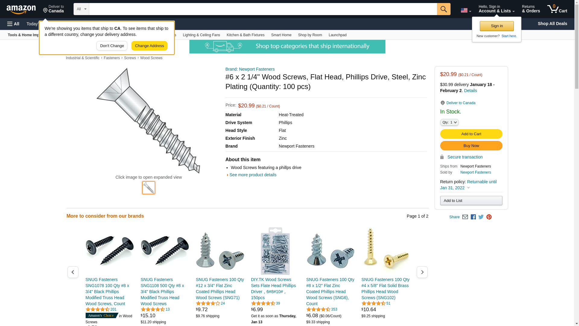 #6 x 2 1/4" Wood Screws, Flat Head, Phillips Drive, Steel, Zinc Plating (Quantity: 100 pcs)