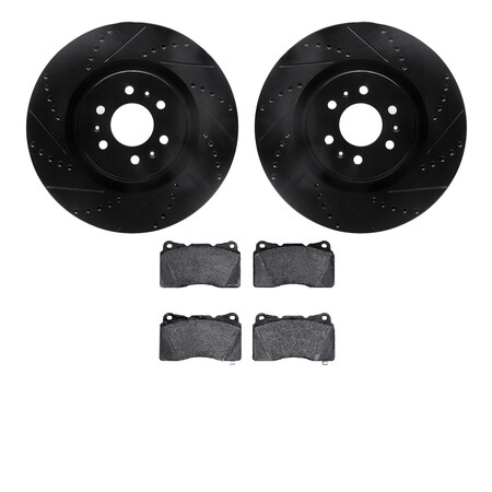 8602-46003, Rotors-Drilled and Slotted-Black with 5000 Euro Ceramic Brake Pads, Zinc Coated