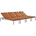 Modway Shore Aluminum Outdoor Patio Four Chaise Lounge Chairs with Cushions in Silver Orange