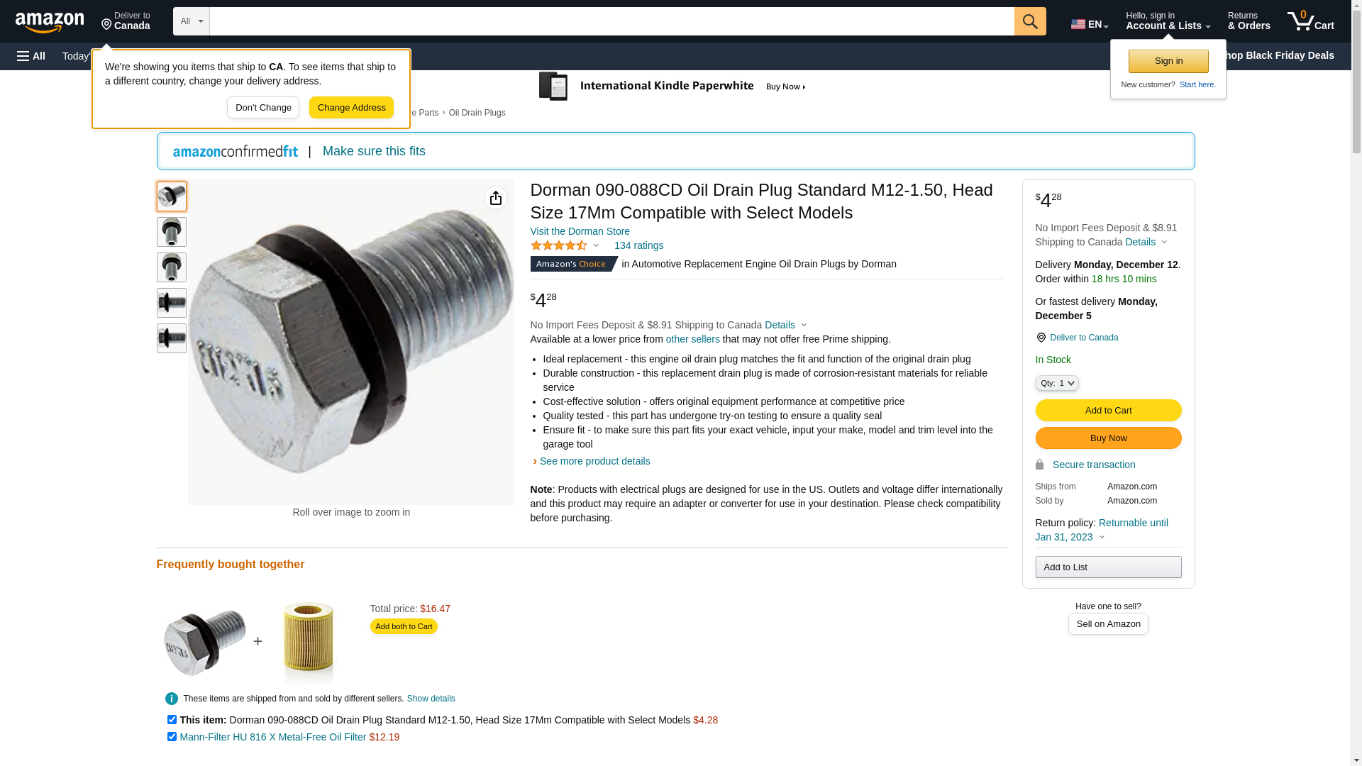 Dorman 090-088CD Oil Drain Plug Standard M12-1.50, Head Size 17Mm Compatible with Select Models