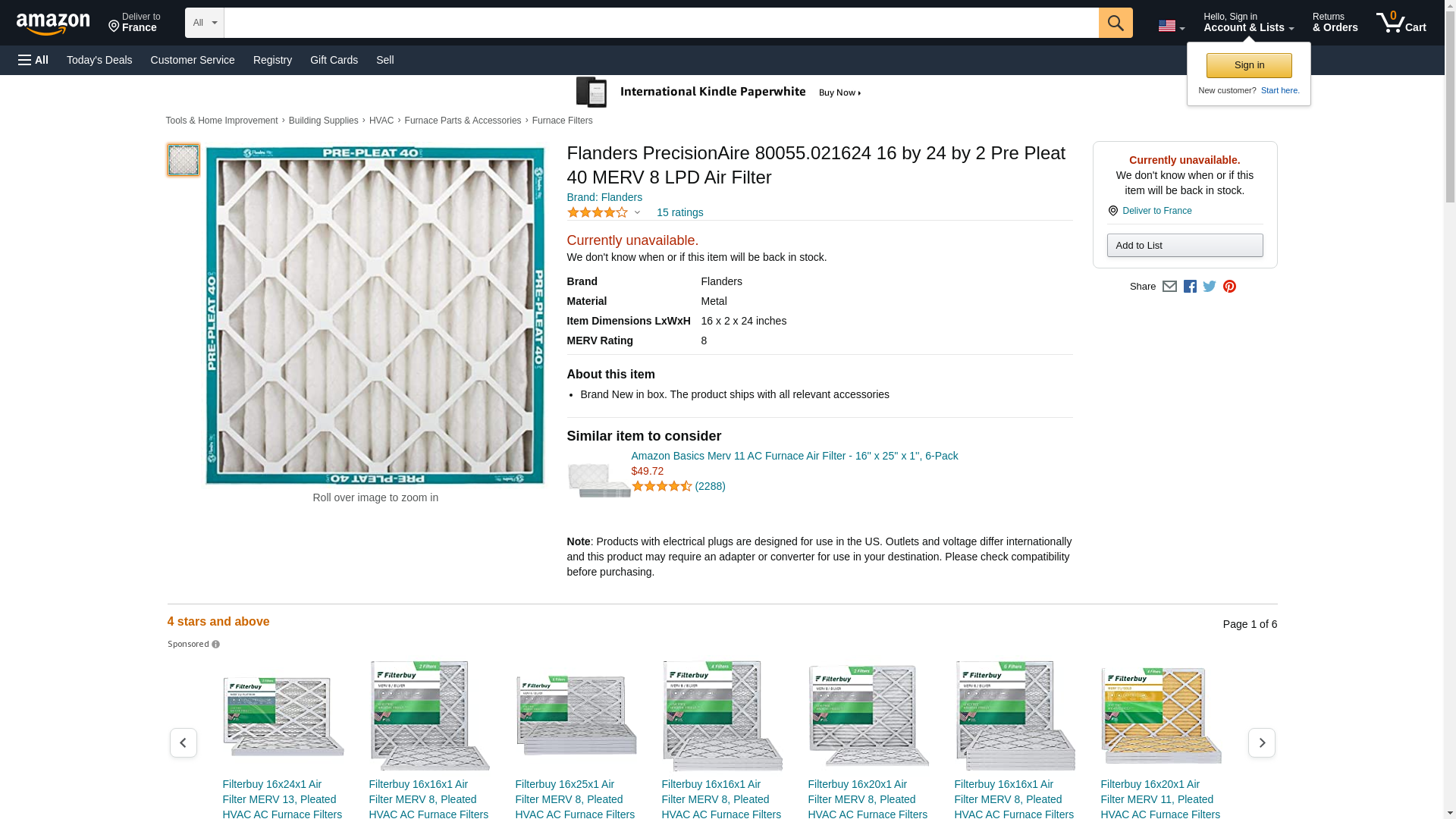 Flanders PrecisionAire 80055.021624 16 by 24 by 2 Pre Pleat 40 MERV 8 LPD Air Filter