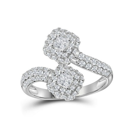 14kt White Gold Womens Princess Diamond 2-stone Hearts Together Bypass Bridal Wedding Engagement Ring 1-1/2 Cttw