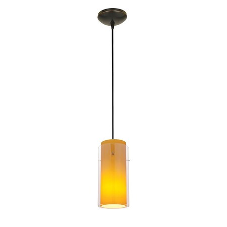 Glass`n Glass Cylinder - E26 LED Cord Pendant - Oil Rubbed Bronze Finish - Clear and Amber Glass Shade