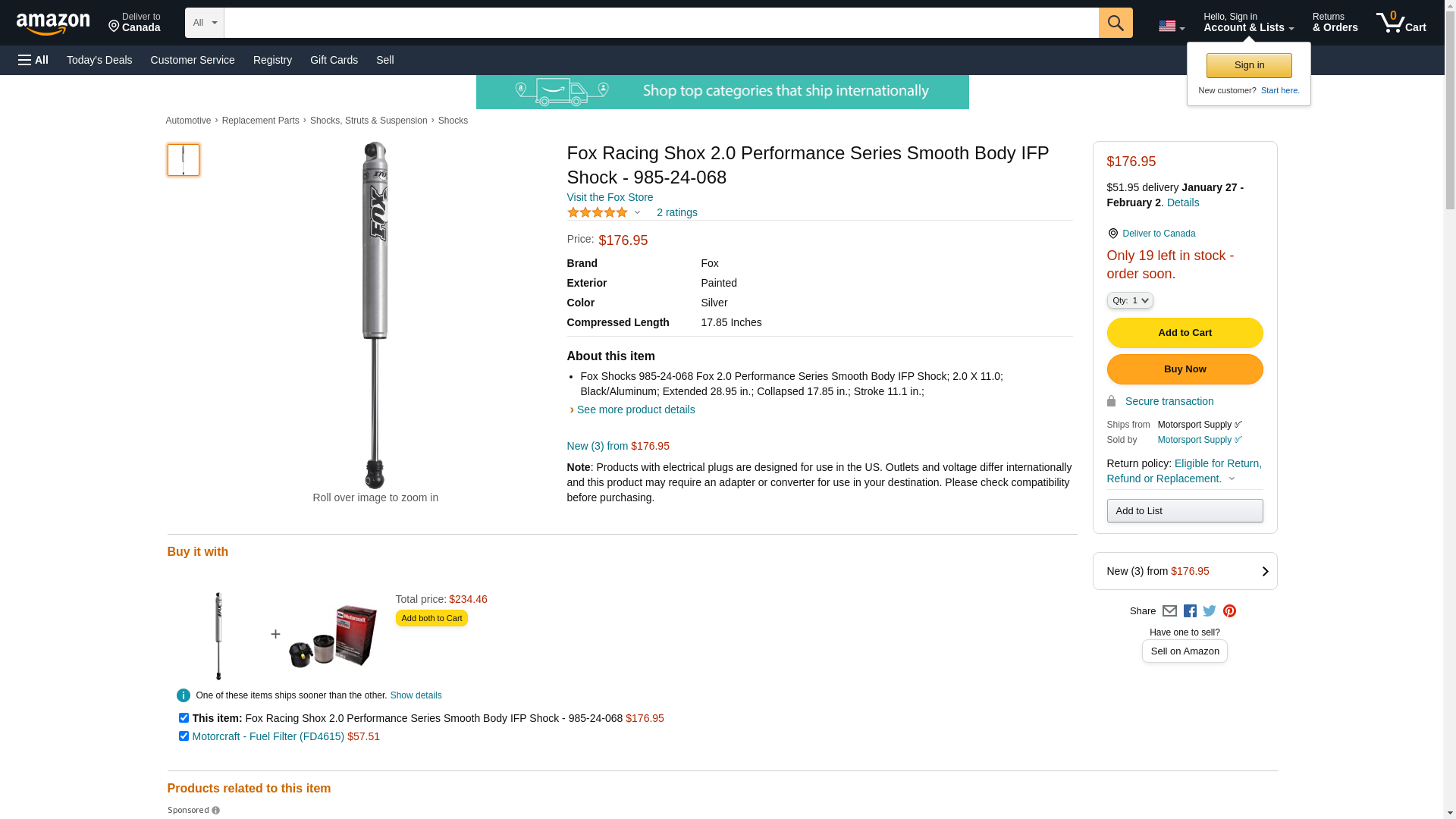 Fox Racing Shox 2.0 Performance Series Smooth Body IFP Shock - 985-24-068