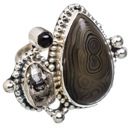 Talented artisans at Ana Silver Co. masterfully handcrafts each piece of jewelry you see here. Our pieces are made with solid 925 sterling silver and genuine gemstones. The one-of-a-kind piece you see here is the same exact piece you will receive. <p></p> <li>Handcrafted by Ana Silver Co.</li> <li>100% Solid Sterling Silver.</li> <li>Gemstone(s): Psilomelane, Herkimer Diamond, Black Onyx (Genuine).</li> <li>Head Size: 27 X 22mm (for rings only), Total Weight: 8.5 grams.</li> <li>Unique and handcrafted, actual item pictured.</li> <li>Order ships within 1 day from California with USPS 1st Class Mail (Fast Delivery).</li>