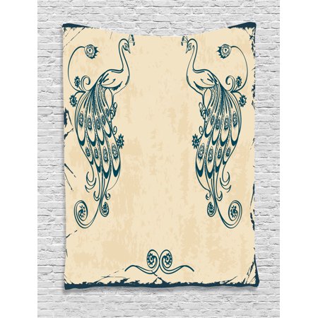 Peacock Decor Wall Hanging Tapestry, Vintage Style Artwork With Peacocks Ornamental Lines Classic Artful Home Deco, Bedroom Living Room Dorm Accessories, By Ambesonne