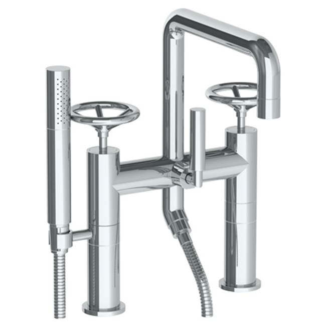 WATERMARK 31-8.26.2-BK-WH BROOKLYN 13 3/4 INCH THREE HANDLES DECK MOUNT TUB FILLER WITH SLIM HAND SHOWER, WHITE,...
