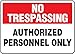 - No Trespassing Authorized Personnel Only safety sign printed in OSHA-compliant colors