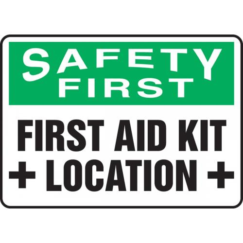 Order MFSD915XP by Accuform Sign "Safety First First Aid Kit Location" - US Mega Store