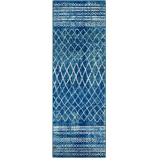 Surya ELZ2339-2776 2 ft. 7 in. x 7 ft. 6 in. Elaziz Runner Rug, Dark Blue, Aqua & White