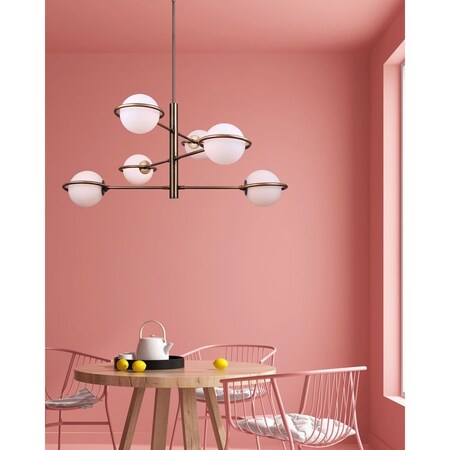 - Elegant Finish and Style: This chandelier features a gold finish, providing a sleek and modern look. The COSIMA, ICH1025A06GD9 -G-, 6 Lt Chandelier, Flat Opal Glass, 40W Type G9, 37inch W x 20.75 - 68.75inch H is designed to complement any interior decor, making it a perfect choice for contemporary spaces.