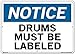 Vestil SI-N-63-E-AL-063 Notice Sign Aluminum .063" Overall Size 20.5"W x 14.5"H Drums Must Be Labeled , 14.5" Height, 20.5" Wide, 0.063" Length