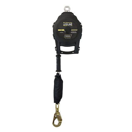 SRL with a steel snap hook that is 360° rotating and has a 3600 lb gate strength.