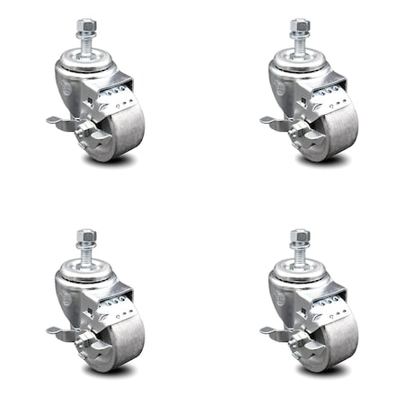 3 Inch Semi Steel Swivel 3/8 Inch Threaded Stem Caster Set with Brake SCC