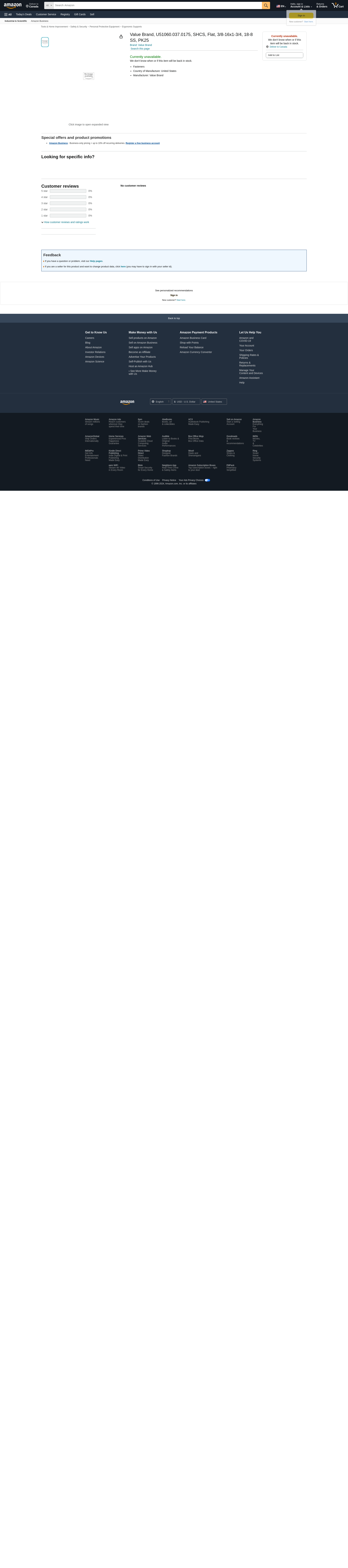 Value Brand, U51060.037.0175, SHCS, Flat, 3/8-16x1-3/4, 18-8 SS, PK25